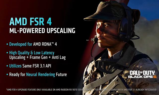AMD 하이퍼 RX의 핵심이자 RDNA4 아키텍쳐를 지원하는 최신 업스케일링 기술 FSR4(AMD FidelityFX Super Resolution 4)도 공개됐다. FSR4는 더 높은 초당 프레임 수, 더 우수한 업스케일링 화면의 품질, 기존 업스케일링 기술보다 낮은 레이턴시를 확보했다.
