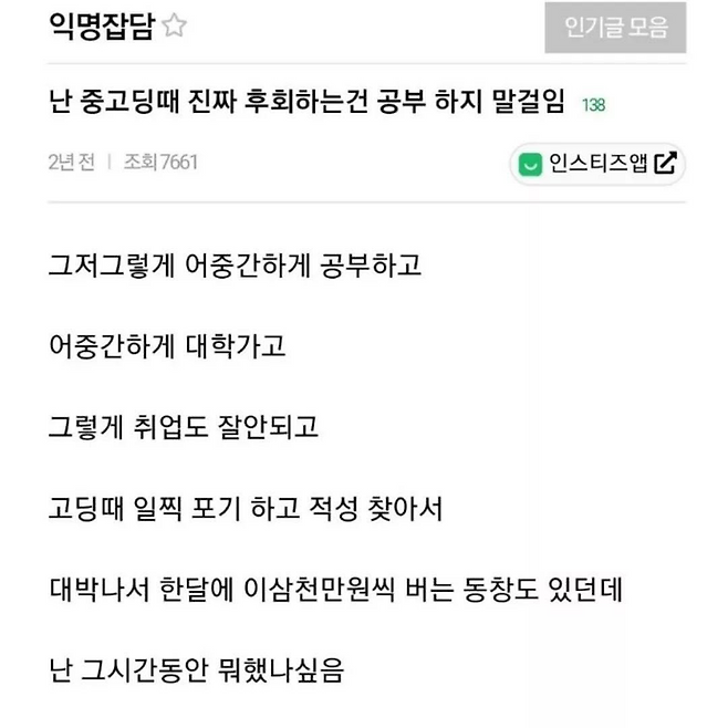 나 중고딩때 진짜 어중간하게 공부한게 후회됨