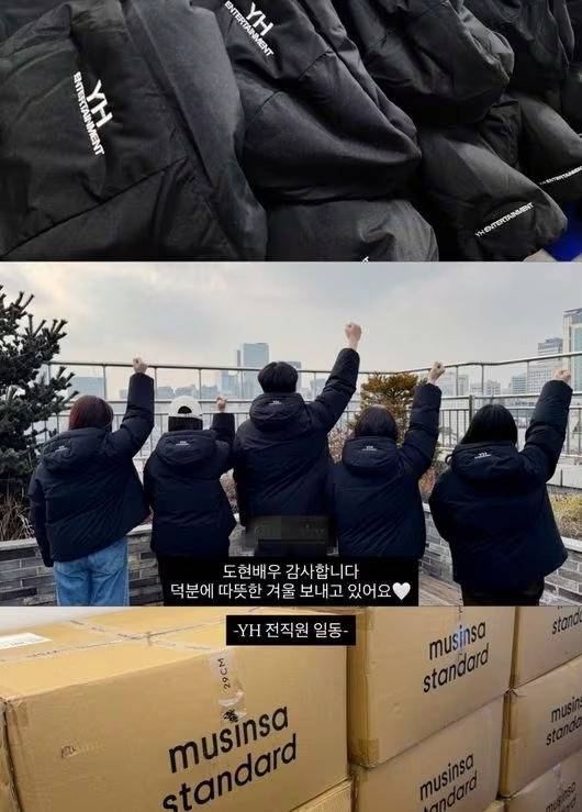 이 미담이 더 빨리 번진 건 인증샷 덕분이었어요. 직원들이 개인 SNS에 패딩을 받은 사진을 올리면서, 박스가 층층이 쌓인 모습부터 단체로 패딩을 맞춰 입고 포즈 잡은 장면까지 공개됐거든요. “도현 배우 감사합니다. 덕분에 따뜻한 겨울 보내고 있어요” 같은 짧은 멘트가 붙으니, 과장된 칭찬보다 오히려 더 현실감 있게 다가왔습니다.