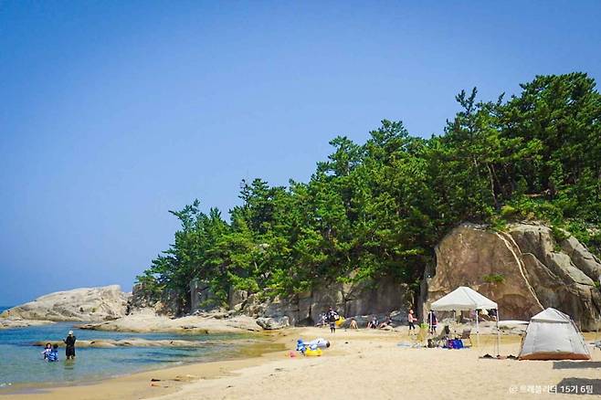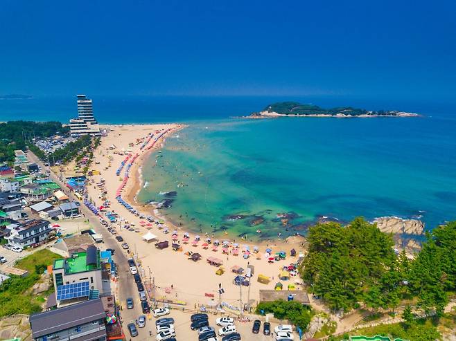 바다 앞쪽에는 대나무와 기암괴석이 어우러진 죽도가 떠 있어, 단순한 해수욕을 넘어 그림 같은 풍경까지 함께할 수 있는 장소입니다.