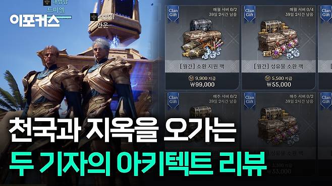 드림에이지의 야심작 '아키텍트: 랜드 오브 엑자일'이 22일 출시됐다. 현재 나오는 평가는 "게임 정말 잘 만들었다"는 극찬과 "과금 모델(BM)이 말도 안 된다"는 비판이 동시에 쏟아지고 있다. 출시 직후 '아키텍트'를 플레이해 보고 느낀 점을 이포커스 곽유민 기자와 함께 분석해봤다.