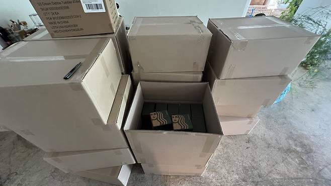 행사 답례품으로 스타벅스 텀블러 1200만원어치 구매해서 받았습니다.