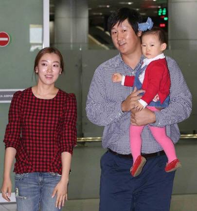 2001년 롯데 구단 행사에서 친구의 소개로 처음 만나, 8년간 연애 끝에 결혼했습니다.