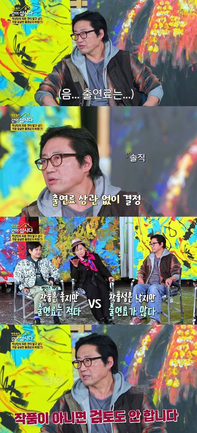 '고수하는 출연료 액수가 있냐'는 질문에 박신양은 "전 사실 잘 모른다. 이 프로그램도 출연료를 조금 준다고 했는데 매니저가 OK를 한 걸로 안다"고 답했다.