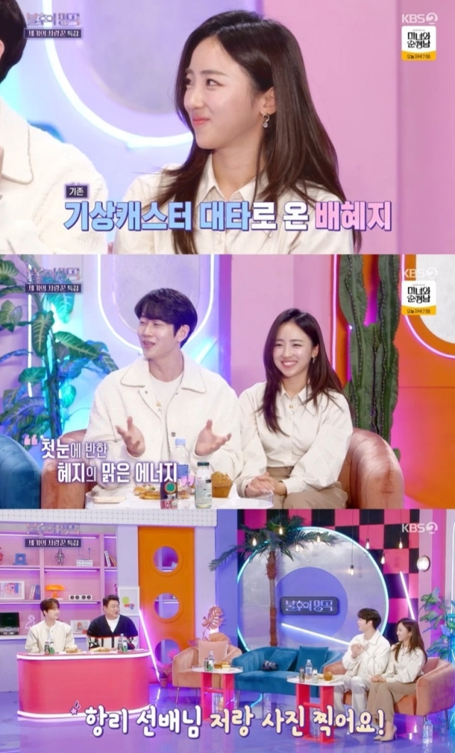 기상캐스터 배혜지와 아나운서 조항리는 평소처럼 아무렇지 않은 척 지나쳤다.