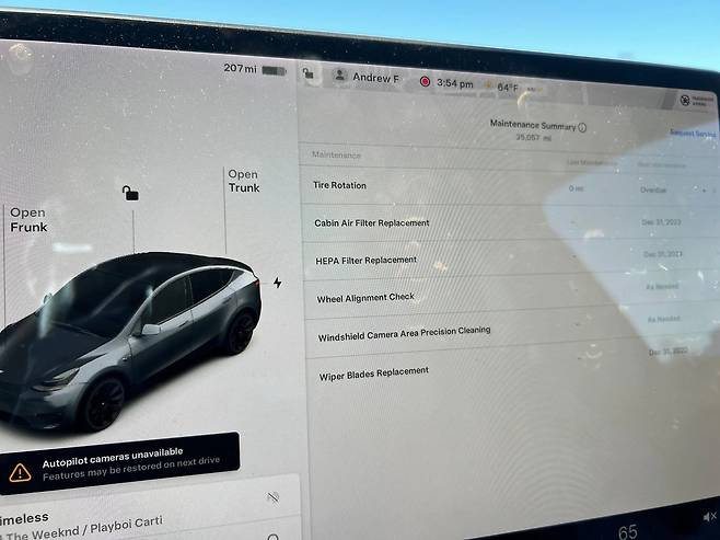 차량의 선바이저는 오염돼 있었으며, 그중 하나에는 담뱃불 자국이 있었다. 또한, 에어컨이 제대로 작동하지 않았고, 우측 카메라는 완전히 고장 난 상태였다. 게다가 지속적으로 ‘오토파일럿 사용 불가’ 경고등이 표시됐다.