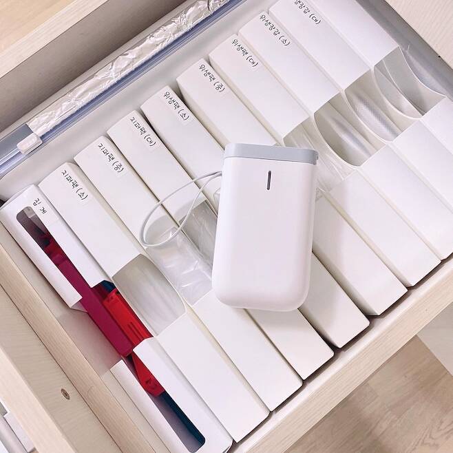 요즘은 주방 일회용 용품들도 정리하기 쉽게 좋은 제품들이 많이 나오는 것 같아요! 종류별로 정리하고 라벨기를 붙여요. 가끔 오시는 친정 엄마가 보기도 좋고 사용하기 쉽다고 하셨어요 >.<