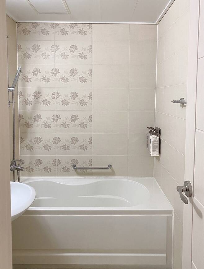 샴푸와 바스는 디스펜서 고리를 달고 청소용품은 아래쪽에 고리를 달아 건조도 빠르고 위생적이게 보관 중입니다. 이렇게 하면 물이 고여서 곰팡이가 끼는 일이 적어 취침 전 물기만 제거해 주면 언제나 보송보송해요. 건식 아닌 건식처럼 깨끗하게 사용할 수 있는 것 같아요! (물기 없는 욕실은 청소의 주기를 늘려줍니다! ^^)
