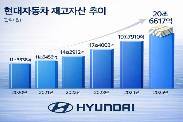 현대자동차의 재고자산이 20조원을 넘기며 사상 최대를 기록했다. 생산 확대에 따른 자연스러운 증가로 볼 수 있지만 판매로 소화되는 속도가 둔화되면서 완성차 재고 관련 부담은 오히려 확대되는 양상이다. 여기에 재고자산 평가충당금까지 감소하면서 재고의 양과 질이 엇갈리는 구조가 형성됐다는 분석이 나온다.