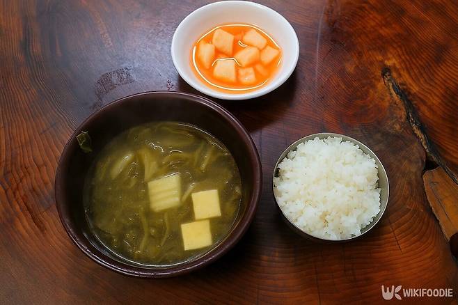 해장국은 맑지만 진한 고기 육수 베이스에 푹 익은 우거지가 가득 들어 있다. 우거지의 부드러운 식감이 국물과 잘 어울린다. 국물은 깔끔하면서도 칼칼한 맛이 돌아 해장용으로도 제격이다. 두부도 함께 들어 있어 부드럽게 넘어간다.