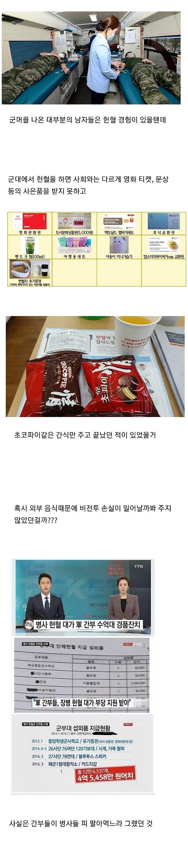 군대에서 헌혈할 때 사은품을 안 주는 이유