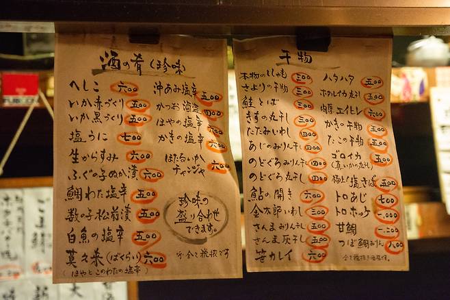 A : 이곳의 정말 치명적인 단점이 하나 있는데요. 일본어를 모르는 사람이 주문하기가 쉽지 않다는 점입니다. 한국어나 영어를 구사하는 직원이 없고, 메뉴판은 마구 휘날려 쓴 듯한 일본어뿐이라 번역 어플은 모두 무용지물입니다. 심지어는 메뉴판에 그 흔한 사진 한 장 없어서 눈치껏 주문하는 것도 통하지 않습니다. 이럴 때 좌절하지 말고 따라 하세요.