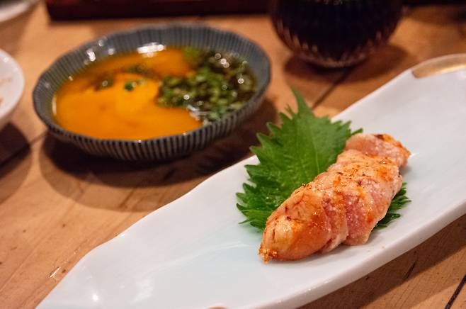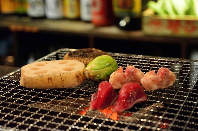A : 어떤 식재료던 화롯불로 구우면 다 맛있다고 생각하겠지만, 격이 다른 맛을 느낄 수 있는 집입니다. 후쿠오카의 선술집이야 널리고 널렸고, 다들 비슷비슷한 식재료를 쓰는데도 이곳만큼 맛있는 집을 아직 저는 못 가봤어요.