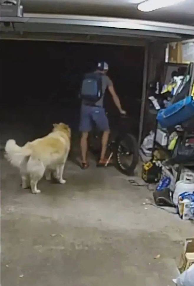 CCTV를 보면, 네티즌의 강아지가 자전거를 들고 가는 도둑을 마주한 모습이 찍혔습니다. 주인은 내심 우리 강아지가 자전거를 지킬 것을 기대했습니다.