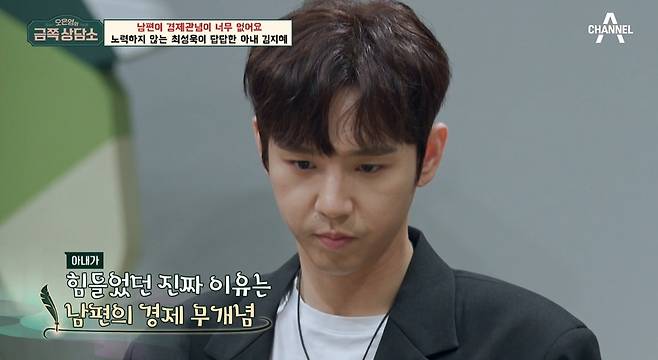 부부의 고민은 '경제관념이 없는 남편 때문에 힘들다"는 것. 아내는 실질적인 가장의 역할을 하고 있었고 부부 소득의 99%는 아내가 버는 수입이었다. 반면 남편은 경제관념 자체가 전무할 뿐만 아니라 아내가 없으면 사실상 아무 것도 못할 만큼 아내에게 의지하며 사회생활 능력이 부족한 상태였다. 부부는 서로에 대한 신뢰가 극도로 떨어진 상황에서 진지하게 이혼을 고민하기도 했다고.
