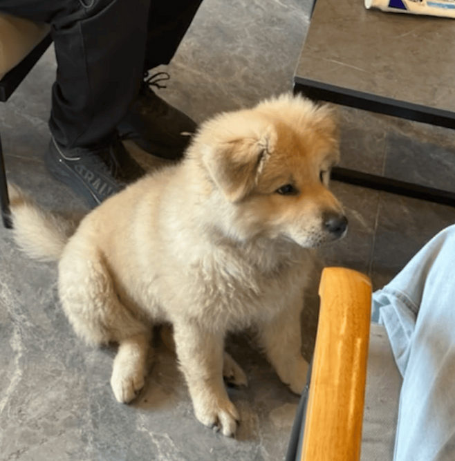 여성은 강아지의 순진하고 푸근한 얼굴을 보며 의아해했습니다. '도대체 어느 집 강아지일까?' 그러다 문득 한 달 전 친구 집에서 봤던 연한 노란빛 강아지 아기가 떠올랐습니다.