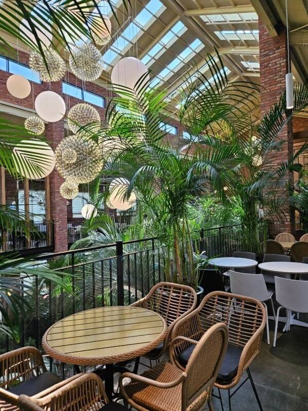 카페 내부에는 분수대와 야자수 나무가 있어 이국적인 분위기를 자아냅니다. 다양한 종류의 빵과 디저트, 브런치 메뉴를 즐길 수 있어 식사와 디저트를 한 번에 해결할 수 있습니다.