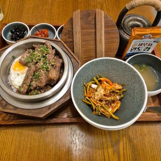 또 다른 인기 메뉴로는 꽈리고추 삼겹 솥밥이 있습니다. 짭조름한 삼겹살과 매콤한 꽈리고추의 조화가 일품입니다. 식사 후에는 누룽지를 만들어 먹을 수 있어 또 다른 재미를 느낄 수 있습니다.