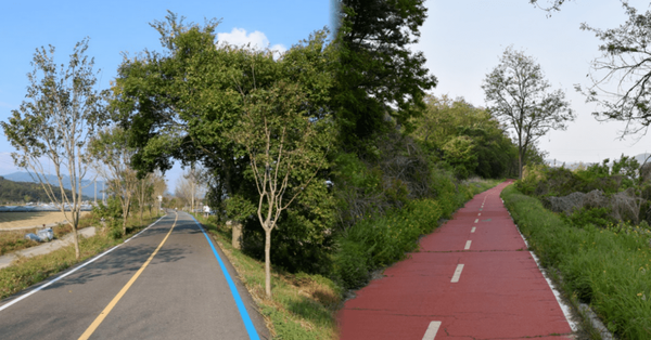 단, 아름다운 경치를 배경으로 달리는 자전거 길은 중상급자에게 추천하는 코스인데요. 오르막길이 많아 체력적인 도전이 될 수 있지만, 그만큼 풍경이 주는 보상은 크며 가을의 절경을 즐기기에 이만한 곳이 없으니 이번 기회에 한 번 도전해보시는 건 어떠실까요?