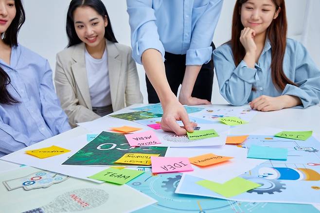 두 번째는 아이디어 발산 단계다. 참가자들이 창의적인 아이디어를 내놓으려면 의견을 최대한 자유롭게 펼치는 브레인스토밍 과정을 거친다. 좀 더 깊은 생각과 토론이 필요하다면 ORID(Objective, Reflective, Interpretive, Decisional level) 집중대화법을 적용한다. 즉, 모든 참석자들이 각자 경험과 정보를 공유한 뒤(Objective Level) 내적 반응을 확인하고(Reflective Level), 핵심 의미를 파악한다(Interpretive Level). 이후 최종 의사결정을 도출하는(Decisional Level) 4단계의 토론 과정을 운영하는 것이다.