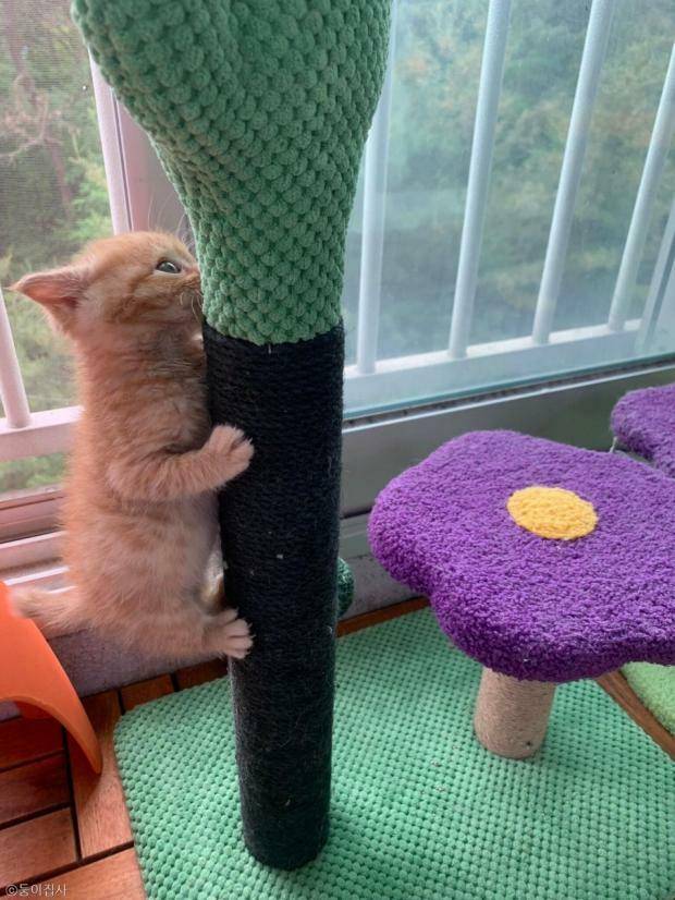 3냥이 중 막내인 둥이는 생후 4개월 된 코숏 왕자님으로, 사람을 좋아해서 낯선 사람이 오면 '남의 집 고양이'가 되는 파워 개냥이다.