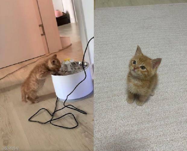 "제가 평소 고양이들의 시시콜콜한 영상을 찍는 걸 좋아하는데, 둥이가 새 정수기에서 물을 마시길래 카메라를 켰다"며 "까치발을 선 채 이마에 물줄기를 맞으면서 물을 마시고 있는 게 황당하기도 하고 귀엽기도 했다"고 말했다.