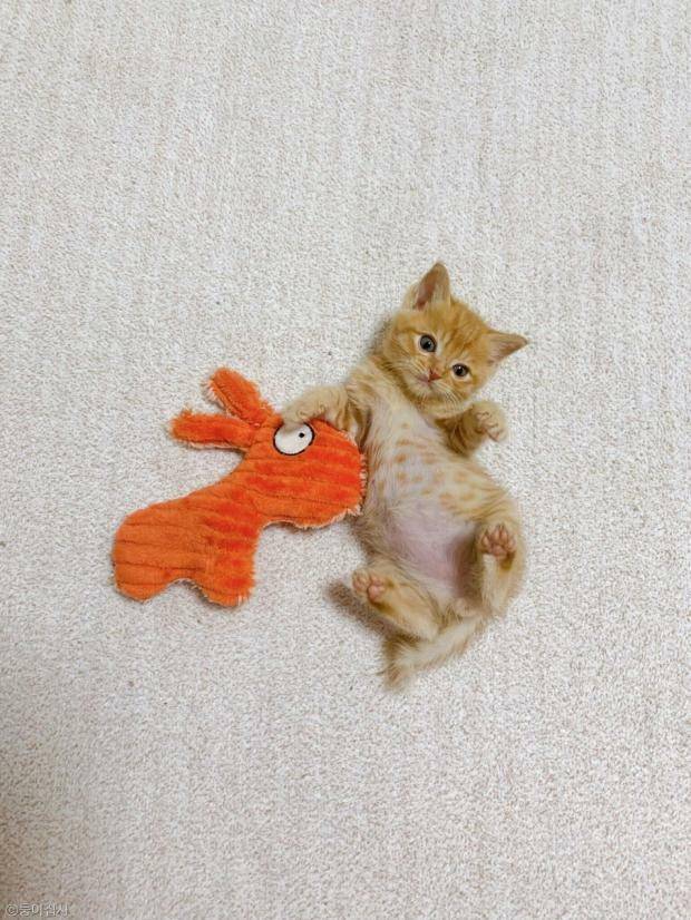 "요새는 애착 인형 물고 다니는 걸 좋아하는 캣유딩"이라며 "진짜 똥꼬발랄해서 보고 있음 정신이 없을 정도"라고 둥이의 매력을 자랑했다.