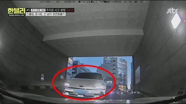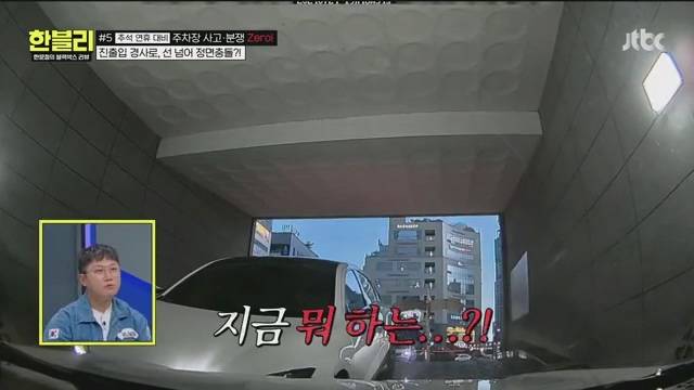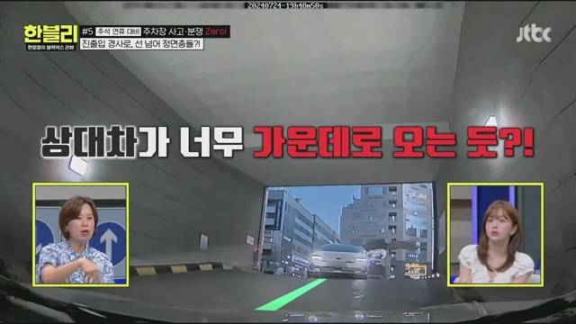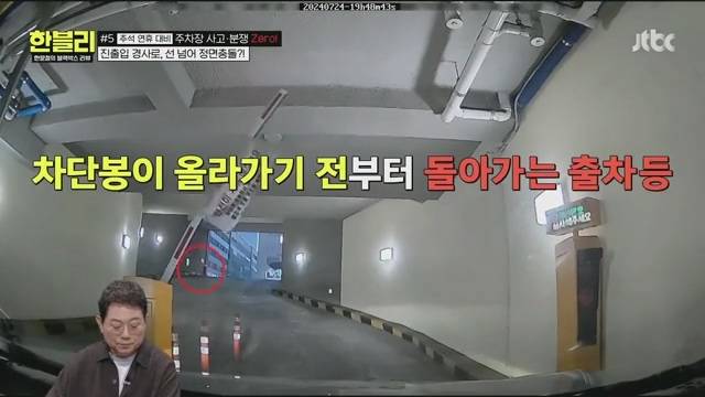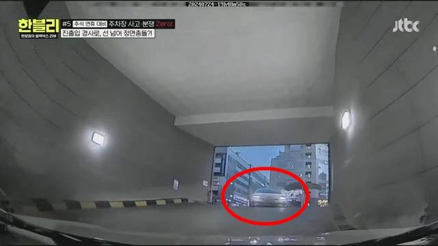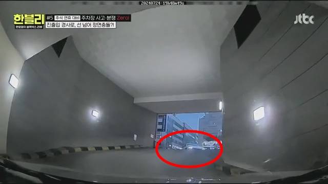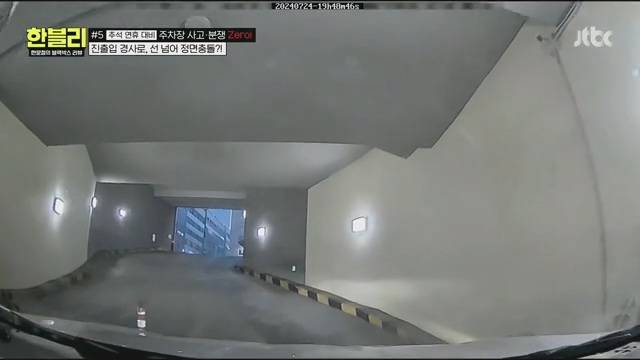 지하주차장 램프에서 출차경광등 울리는데 무지성으로 중앙으로 들어온 차량