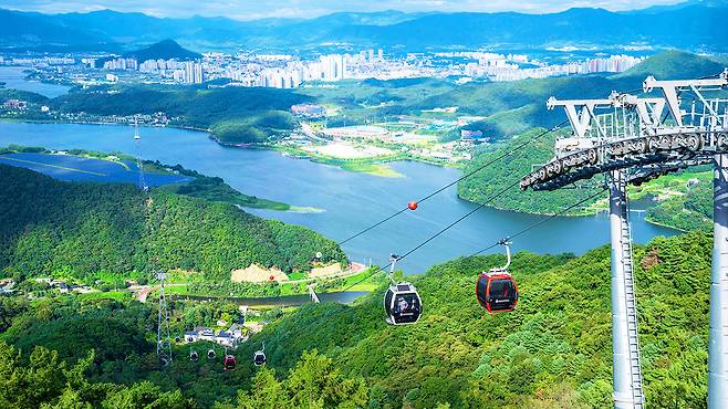 의암호 수변에 자리한 하부 정차장에서 출발하면 케이블카는 곧바로 수면 위로 진입한다. 전체 3.616km 중 약 2km가 호수 구간으로 구성되어 있으며, 이후 1.61km의 산악 구간이 이어진다. 이처럼 두 가지 지형을 한 번에 경험할 수 있다는 점이 가장 큰 특징이다.