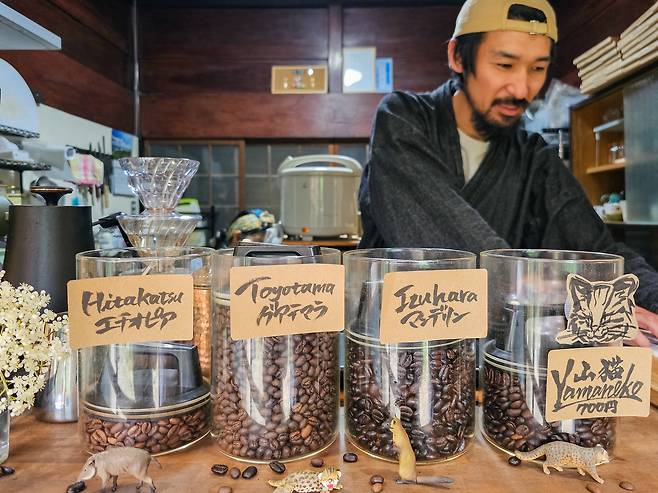 며칠 뒤 한창 비가 내리던 오후, 일본식 고택을 개조한 카페를 찾았다. 촉촉한 날씨와 어울리는 곳이었다. 높은 습도 때문인지 커피 로스터에서 원두 향이 진하게 풍겼다. 덥수룩한 턱수염에 잔잔한 미소를 띤 남자가 우리를 맞이해주었다. 앞치마를 두른 일본식 복장에 야구 모자를 쓰고 있는 모습이 독특하면서도 재미있다고 생각했다. 한국에서 온 우리를 반겨주는 그의 호의에 기분이 좋았다.
