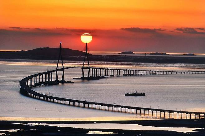 대한민국에서 가장 긴 교량 중 하나인 인천대교, 바다 위로 곧게 뻗은 아름다운 사장교 구조가 시선을 강탈합니다. 밤에는 은은한 빛으로 꾸며진 인천대교 야경은 인천을 대표하는 장면이 되지만, 햇살이 처음으로 케이블을 비추는 순간이야말로 이 다리가 가진 구조적 아름다움이 가장 잘 드러나는 시간입니다.