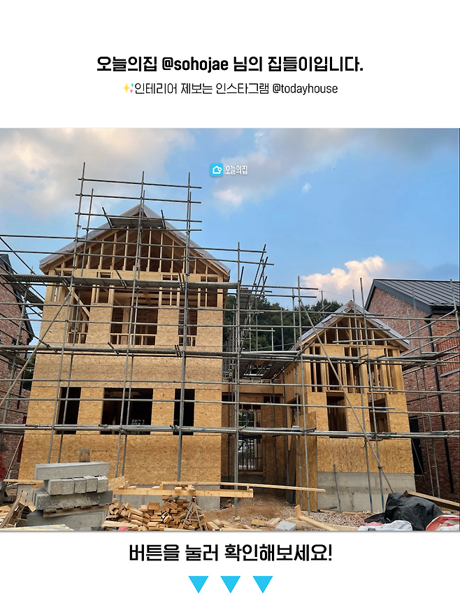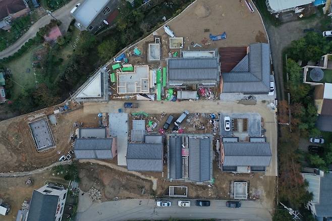 한창 단지 조성 중일 때 찍은 드론샷인데 아래쪽 오른쪽에서 두 번째가 저희 집이네요. ^^ 자, 그러면 뚝딱뚝딱 지어진 저희 집을 차례대로 소개해드릴게요!