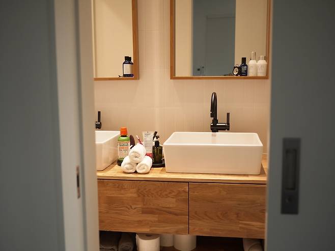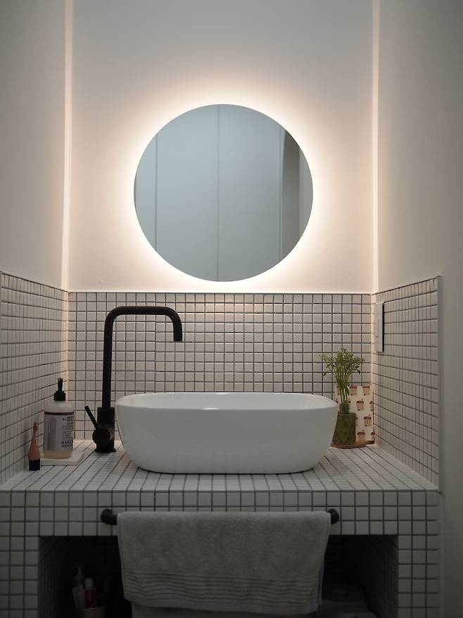 세면대는 어디에선가 본 이미지가 모티브가 되었는데요, 나름 저희 집 포토존이랍니다. :)