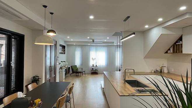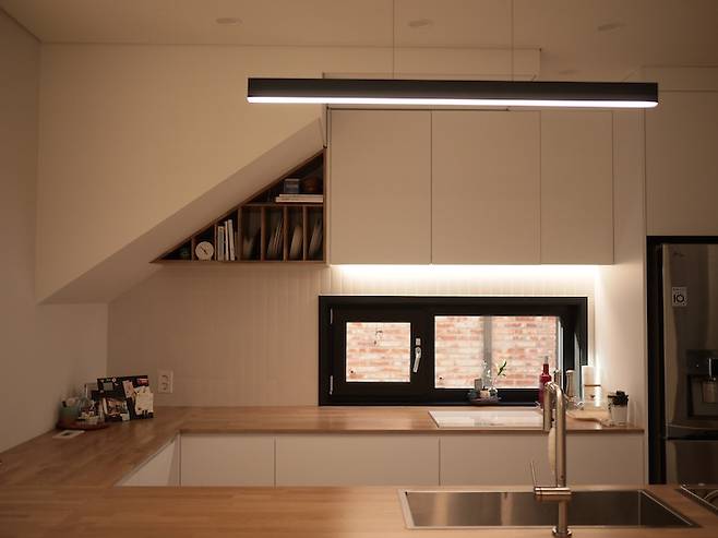 이제는 남편이 아침에 일어나면 문을 살포시 닫고, 씻은 후에, 옷을 갈아입고 바로 1층으로 내려가서 출근을 하고 있어요. 공간이 나뉘어 있으니 아침뿐 아니라 저녁에도 서로 방해하지 않고 생활할 수 있게 된 것 같아요.