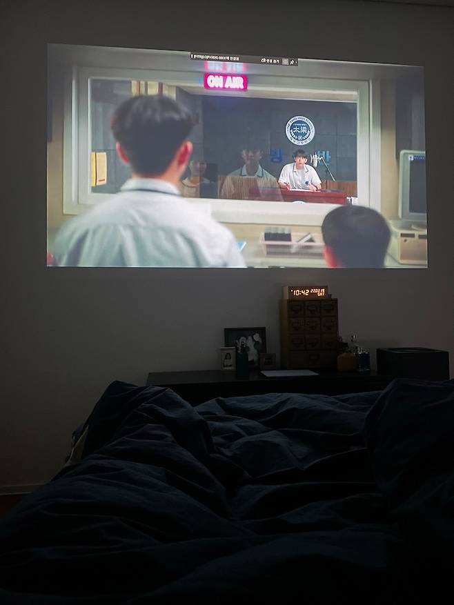 이렇게 빔프로젝터를 틀어주면, 방구석 1열!