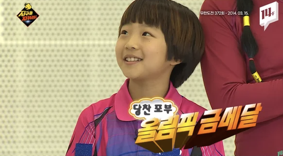 2014년, 열 살이 된 신유빈은 MBC '무한도전'에 출연해 다시 한번 대중의 주목을 받았습니다. 프로그램에서 멤버들과 탁구 대결을 펼친 신유빈은 어린 나이에도 불구하고 놀라운 실력을 선보여 모두를 놀라게 했습니다. 당시 유재석이 장래희망을 묻자 신유빈은 "올림픽 금메달"이라고 씩씩하게 답해 현장을 미소 짓게 만들었습니다.