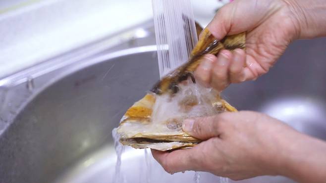 먼저 북어대가리는 물에 깨끗이 씻어 주세요. 북어대가리를 함께 넣고 끓이면, 시원함과 감칠맛이 확! 올라간답니다.