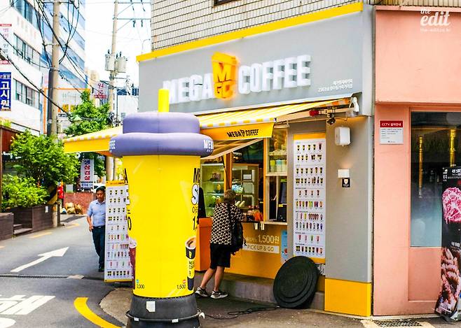 첫 번째는 메가커피다. 저가 커피(개인적으로 저가 커피라는 표현을 그렇게 좋아하지 않지만, 부득이하게 익숙한 표현이라) 분야에서 가장 널리 알려진 브랜드. 저렴한 가격으로 카페인을 수혈할 수 있는 가장 큰 규모의 체인점이다. 높은 인지도, 테이크아웃 위주 소형매장, 손흥민 선수와 같은 빅모델 전략으로 소비자들에게 친숙하다.