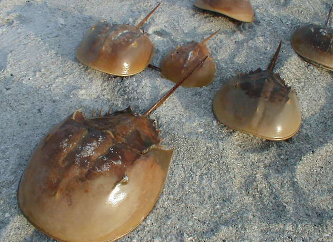 투구게의 혈액 속에는 세균에 극도로 민감하게 반응하는 면역체계가 들어있는데 백신이나 의약품 개발 실험에 이것이 사용되면서 투구게가 무분별하게 잡히고 있습니다. 30%의 혈액만 채혈하고 방생한다고는 하나 채혈과정 중 10%의 투구게는 죽고, 죽지 않더라도 채혈을 당한 암컷들은 짝짓기 확률이 낮아지게 됩니다. 이로 인해 현재 개체수가 줄어들고 있고 세계자연보전연맹(IUCN)에서는 ‘위기 근접종’으로 분류하고 있습니다.