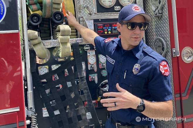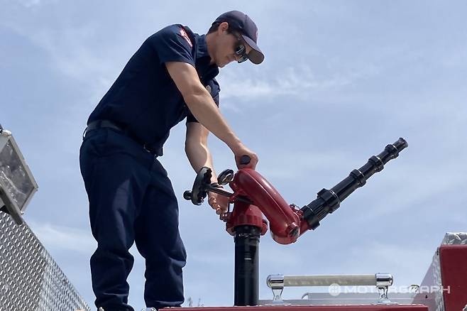 1분에 약 1000갤런(약 3785리터)의 물을 분사할 수 있는 펌프카는 펌프 시스템 외에도 최전방에서 뛰는 파이어맨들을 위한 장비도 가득하다. 가장 특이했던 부분은 시트에 파이어맨들의 산소통을 거치할 수 있다는 점이다. 이 외에도 다양한 휴대장비를 거치할 수 있어 시트에서 곧장 장비를 장착할 수 있다.