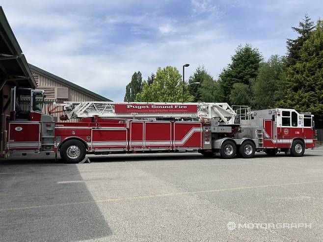 우리가 방문한 퓨젯 사운드 소방서는 시택시 내에서 가장 고가의 장비를 갖추고 있는 곳이다. 공항을 제외한 대부분의 건물이 단충 건물이다 보니 대형 소방차가 거의 필요 없다고 들었는데, 이곳에는 혹시라도 모를 상황에 대비한 TDA라는 대형 사다리차가 준비되어 있다. 권 의원의 설명에 따르면, 시택시에서 TDA를 보유한 소방서는 이곳이 유일하다.