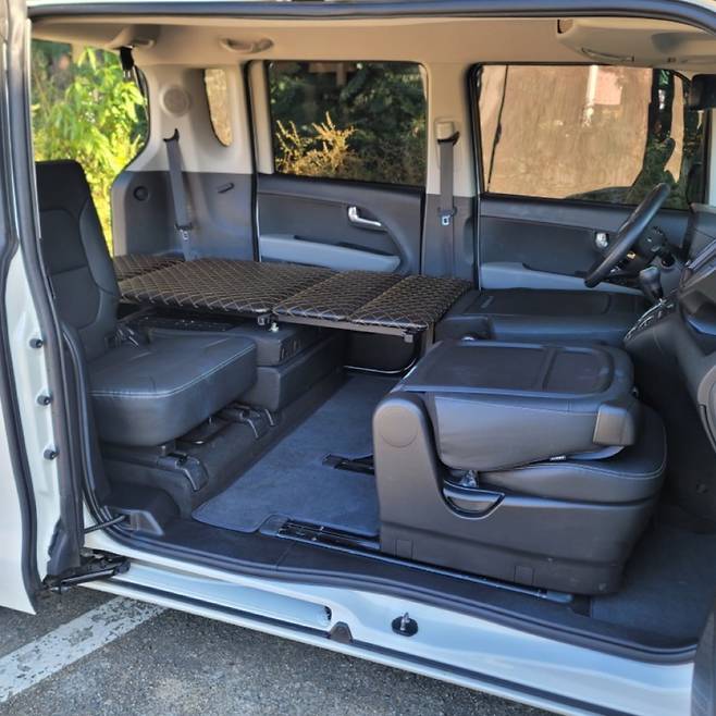 이렇게 전부 펴서 차 전체를 침대 나 원룸처럼 쓸 수 있고,