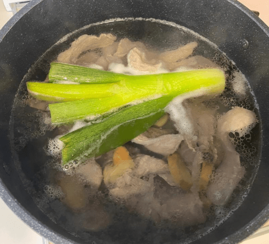 돼지고기를 삶는 과정에서 고기 속의 육즙과 지방, 그리고 고기의 단백질 성분이 물에 스며든다. 이때 생기는 육수는 단순한 삶은 물이 아니라 진한 감칠맛과 고소함을 담은 천연 육수라고 볼 수 있다. 특히 생강이나 된장을 넣고 잡내 제거를 위해 끓였다면 더욱 깊은 맛이 우러난다.