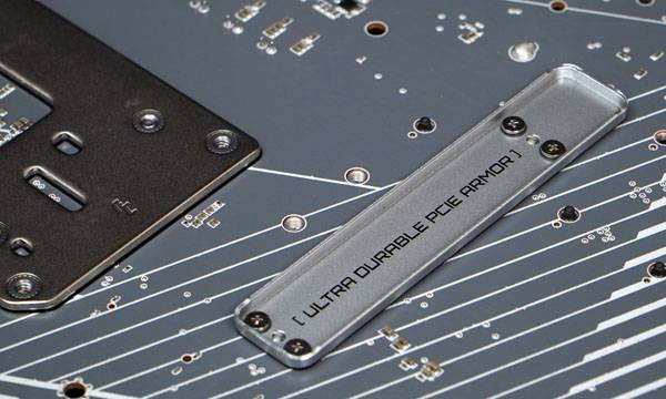 크고 무거운 고사양 그래픽 카드를 안정적으로 장착할 수 있도록 PCIe UD 슬롯 X에는 아연 합금을 사용하여 고속 신호에 대해 효율적으로 전자파를 차폐할 수 있고 전용 백플레이트를 추가해 일반 PCIe 슬롯보다 10배 더 강한 지지력을 확보했다. 메탈 슬롯 적용으로 장착 과정에서 그래픽 카드 PCB가 긁히는 것을 막기 위해 내부에는 라이닝 고무 스트립이 있다.