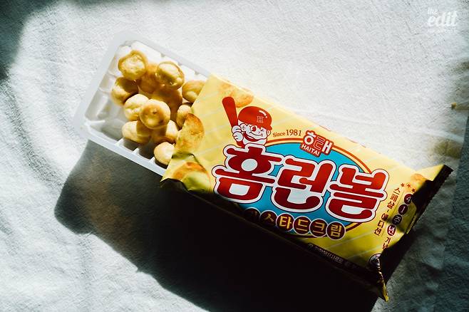 과자업계에서 독보적인 위치를 점하고 있는 제품, 바로 홈런볼이다. 홈런볼에는 무엇이 들어갔냐에 따라 그 맛이 크게 달라진다. 부드러운 슈와 안에 들어간 크림의 시너지가 중요하기 때문이다. 초코뿐만 아니라 그릭요거트, 티리미수, 딸기맛 등 다양한 종류의 홈런볼은 형태만 유사할 뿐 입 안에 들어가면 각기 다른 맛이 피어난다. 지금 소개하는 제품은 커스터드크림 맛이다. 홈런볼의 근본 맛 ‘초코’보다 더 맛있다고 말할 수는 없지만, 슈와 커스타드 크림이 꽤 어울린다는 생각이 들었다. 페레로 로쉐처럼 가득 쌓아놓고 배부를 때까지 먹고 싶다. 가격은 1,700원.