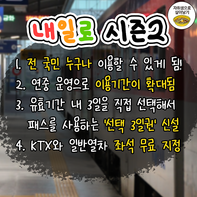 전 국민이 이용 가능한 내일로패스 시즌2 정보