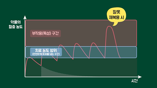 반대로 치료 농도 범위가 비교적 넓고 장기 노출이 중요한 만성질환 약물은 한 번 복용을 건너뛰어도 약효가 여전히 남아 있으므로 몸에 미치는 영향이 제한적인 경우가 많습니다.