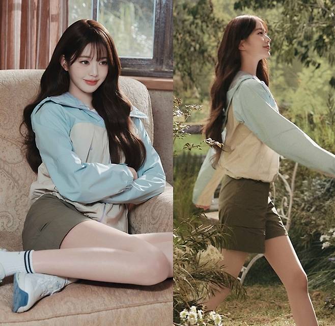 공개된 화보에서 장원영은 블루 컬러의 가벼운 집업 바람막이 재킷에 짧은 기장의 쇼츠를 매치한 하이킹룩으로 상큼하면서도 발랄한 봄 스타일을 연출했다.