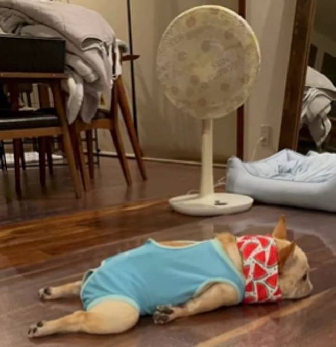 프렌치불독 강아지 본본이가 바닥에 누워버린 것도 단순한 귀여움이 아니라스스로 체온을 낮추기 위한 본능적인 행동이었던 것.