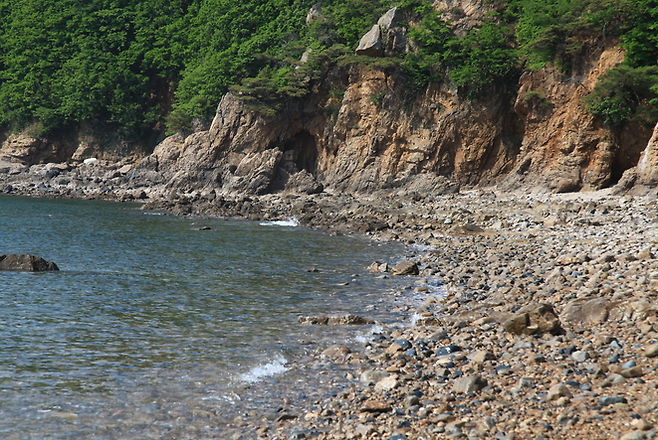 육도복지회관 앞길을 따라 서쪽 해안가로 나가면 산비탈이 가파른 오솔길이 나오는데요. 그 길을 따라 자갈밭으로 이루어진 해안가로 나가면 높은 절벽의 기암괴석들이 우뚝 솟아 멋진 풍경을 볼 수 있다고 합니다.